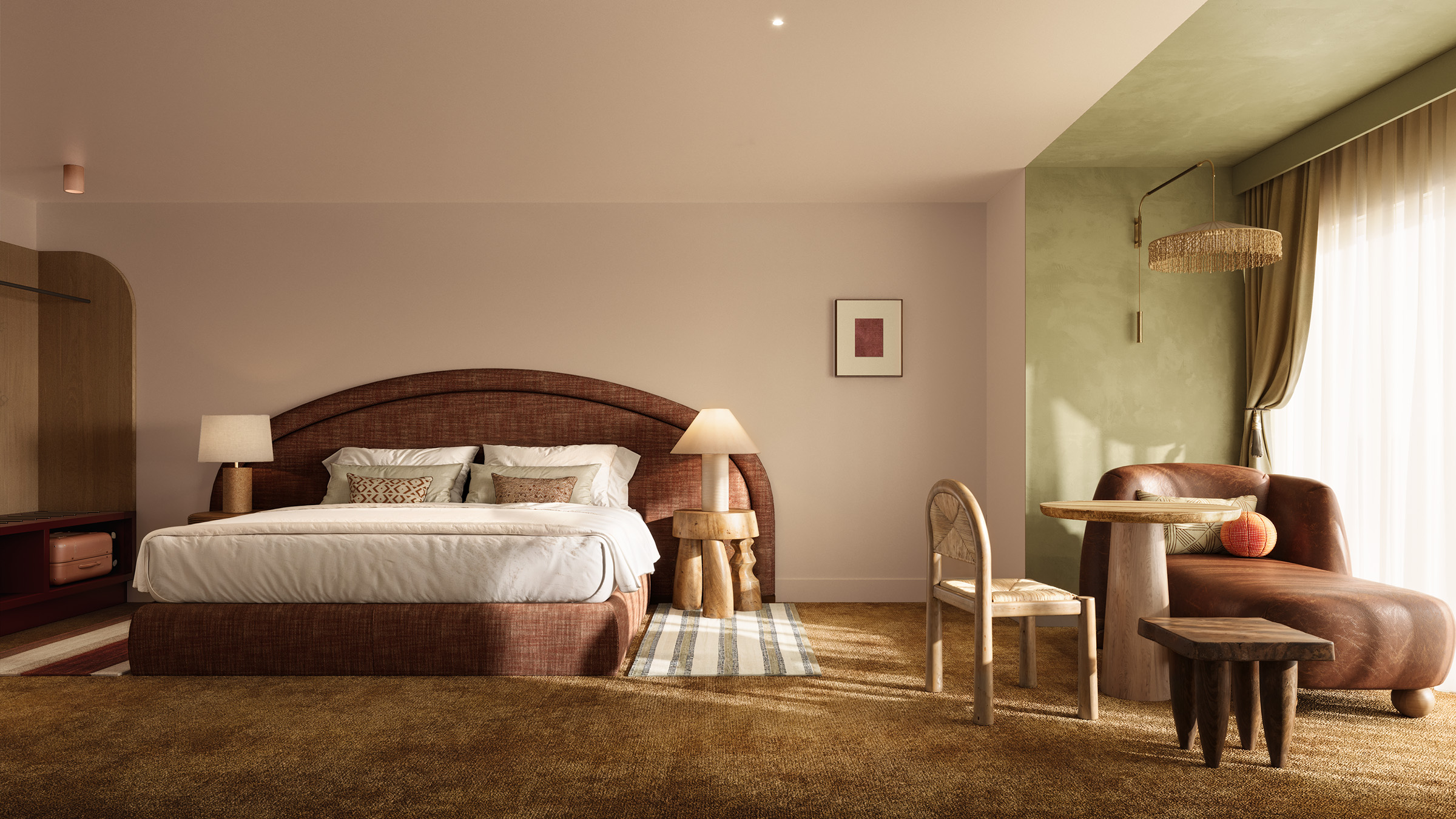 Our bohemian chic rooms offer space to recharge, providing a retreat from the buzz of the city.